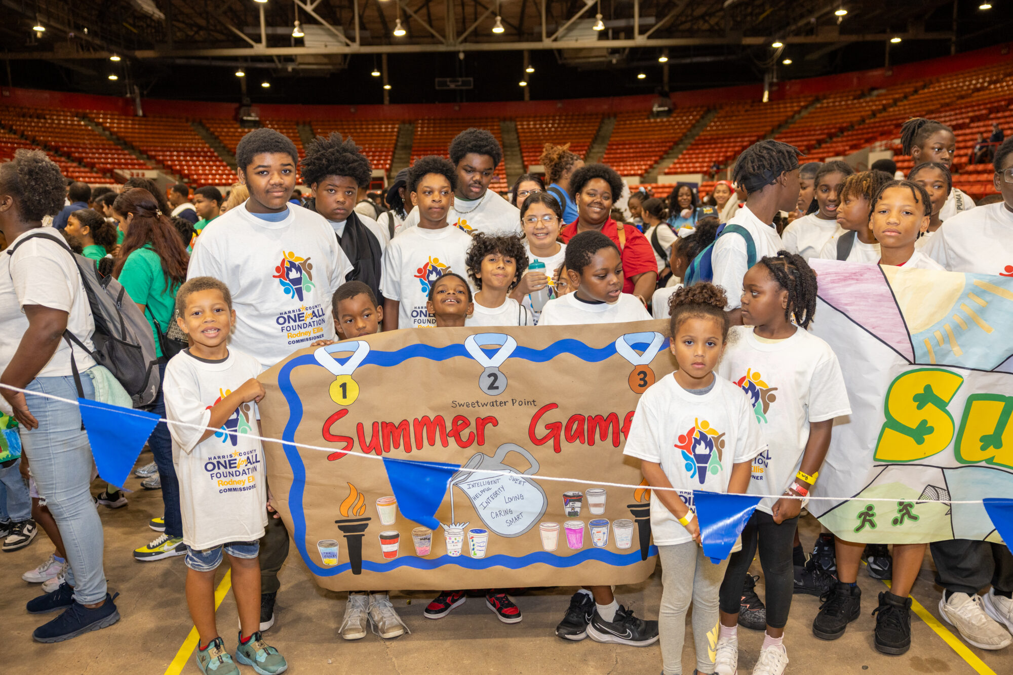 The One for All Foundation summer programming fulfills a critical need in Houston. Studies have shown that without access to affordable, high-quality summer programming, working families lack safe and enriching places for their children to attend while parents are at work. Children, especially those from underserved areas, have difficulty retaining what they learned in the previous school year. Approximately 1,700 Houston-area youth, ages 6 to 17, participated in the free Summer Games, Discovery Camp, 3-on-3 Basketball, and Learn-to-Swim sessions over an eight-week period – culminating in the Final Event/Bright Futures Fair and closing ceremonies that included a “Parade of Champions” on Aug. 1 at NRG Arena. The One for All Foundation’s mission is to implement and sustain programs that provide training, support and resources that lead to healthy and productive lives for youth.