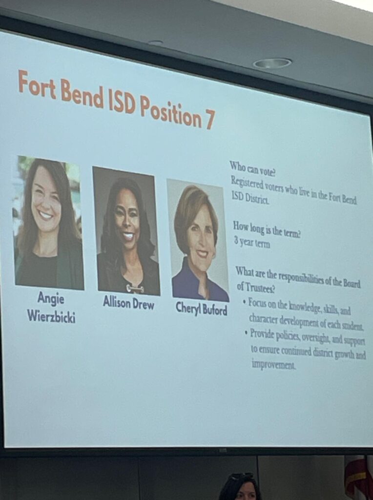 The FBISD school board had two open seats – Positions 3 and 7 – each with three candidates vying for the spot.