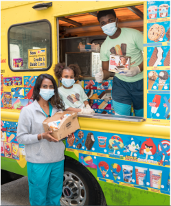 London Boyce and her brother, TJ Boyce (star of Wayne Brady’s “Comedy IQ”)  provided smiles to the nurses, doctors, and staff at Methodist Hospital by bringing their Ice Cream to the hospital to give out free ice cream and popsicles to over 200 nurses and doctors. She has a passion for making others smile, so this idea came about when London saw on the TV how hard our heroes have been working to keep our community healthy.